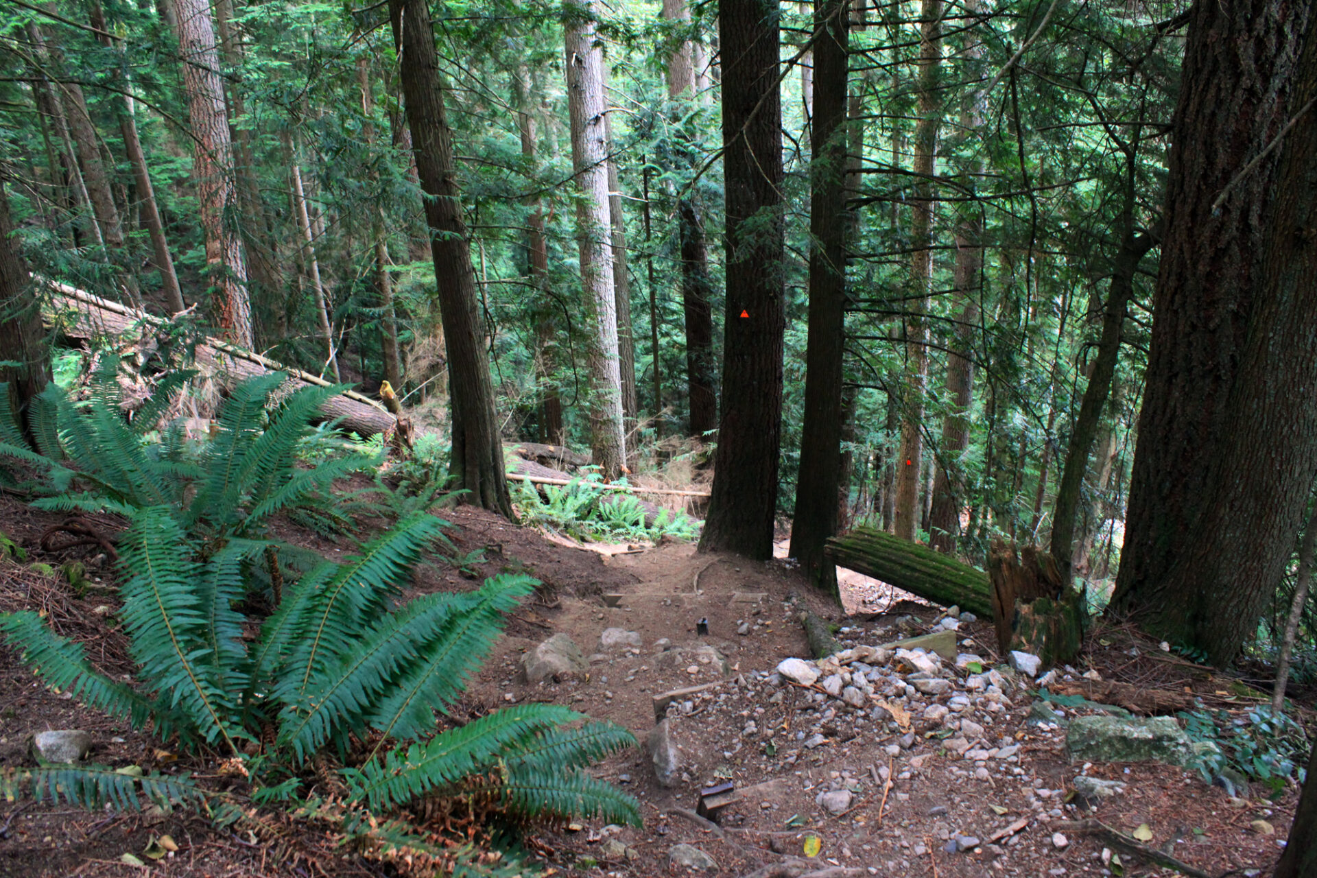 The steep terrain along the Baden Powell Trail, between Skyline Drive and Grouse Mountain, in North Vancouver.