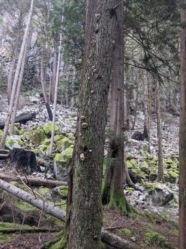 This time of year the trail was covered in both snow and fallen trees, but we were able to do the whole trail. Didn't see much wildlife, just a couple birds.