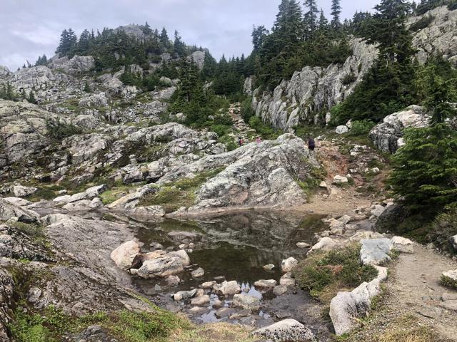 Hiked Mount Seymour today. Went to all 3 peaks. There unfortunately wasn't much of a view at any due to the smoke from the wildfires but it was still a beautiful hike through alpine meadow. It is quite a technical trail - most is climbing over rocks. It is especially difficult and a bit hard to follow after the first peak. But worth it. Saw a bear at the summit so left immediately. Went down via Mystery Lake - perfect lake to stop for a refreshing swim after the hike!