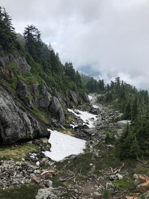 Tried to do Seymour this morning, still WAY too much snow! Not sure how Jasumi did it. There were hikers with mountaineering axes turning back! We made it to the base of the first peak where the snow was too deep to ascend the marked trail and visibility was really poor (~100m). There was one other group proceeding but they had to scramble up mossy rock and did not appear to be having fun. Really hope to do this hike in some better weather.