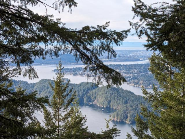 On the second, point, this hike is best taken in shoulder season, after the snow has melted but before the summer. The trail is relatively narrow as it sharply snakes its way up hill, and even on an April weekday there was a good amount of traffic being somewhat challenging to pass on the switchbacks. Also, while the viewpoints are good, they're not as spectacular considering the amount of work you put in. In July/August, Mount Seymour would get you a better view while being a better hike, and the Velodrome Trail on Burnaby Mountain offer a comparable view for a lower time investment.