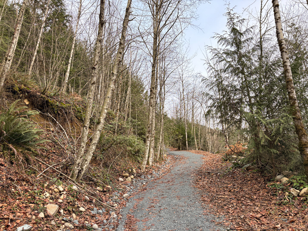 After enjoying the view, walk back down the gravel trail as you quickly descend back to the start of the trail and down to the area by Lougheed Highway.