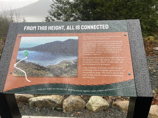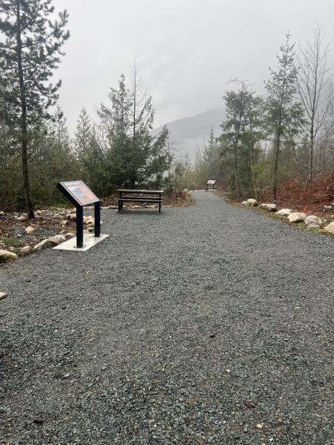 Beautiful trail. Short hike, the trail passes over Sq’ewlets First Nation. Nice storyboards, picnic tables and comfortable benches at the top to reflect and enjoy the views.