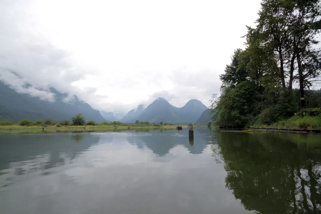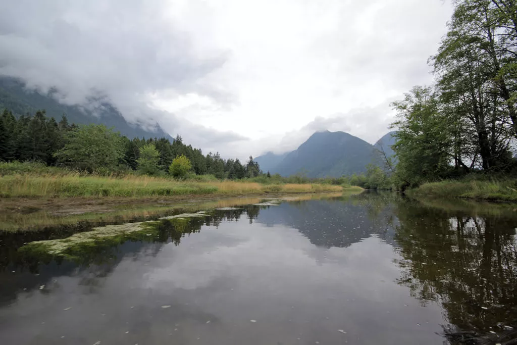 Start your trek by paddling across Pitt Lake towards the Widgeon Slough. Make your way along the waterway keeping an eye out for ducks, herons, deer, and even bears along the shorelines. After paddling for about 30 minutes, you'll reach a fork in the creek. Stay to your left and continue paddling. Depending on the time of year, you may have to get out of the canoe and pull the canoe through sections as the creek can become quite shallow.