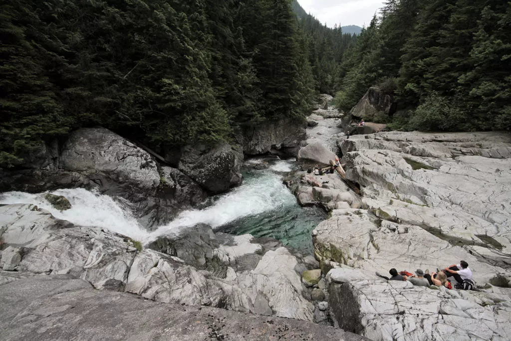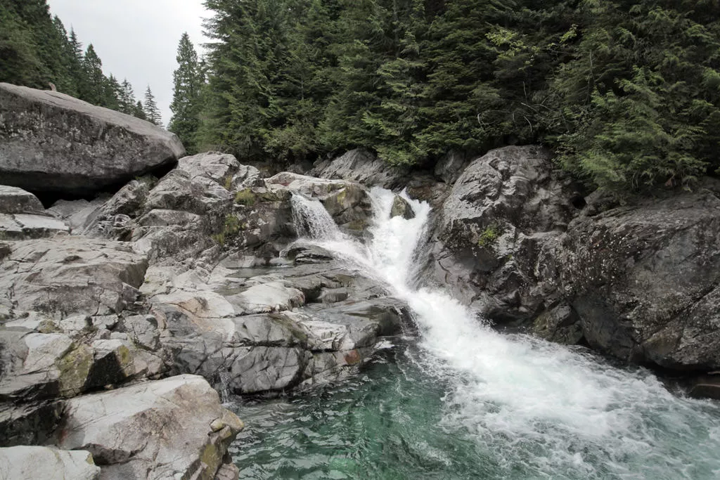 Follow the trail through the forest of Cedar, Fir, and Maple trees. After an hour of hiking, the trail reaches the lower falls which is a perfect spot for wading in the water on a hot, sunny day. Continue hiking along the trail for another 10 minutes to reach the upper falls. The water has flowed over these rocks for hundreds of years, carving smooth paths and sculpting them into their current forms. This is the perfect location to stop for lunch.
